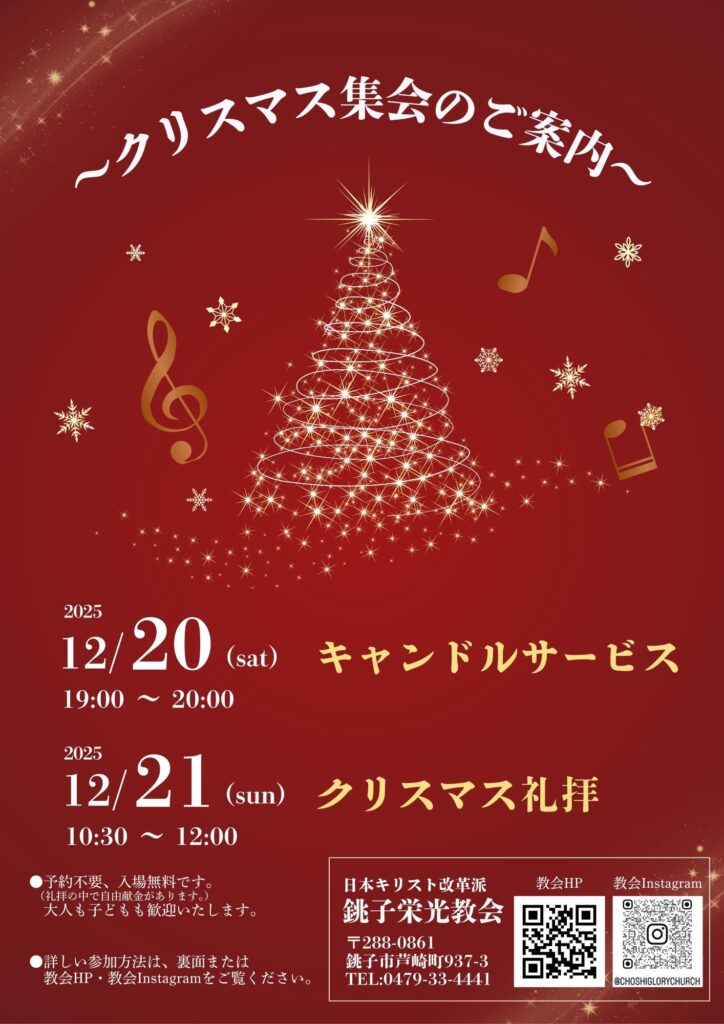 銚子栄光教会では、今年もクリスマス集会を予定しています。あなたも今年は教会でクリスマスのひと時を過ごしてみませんか。